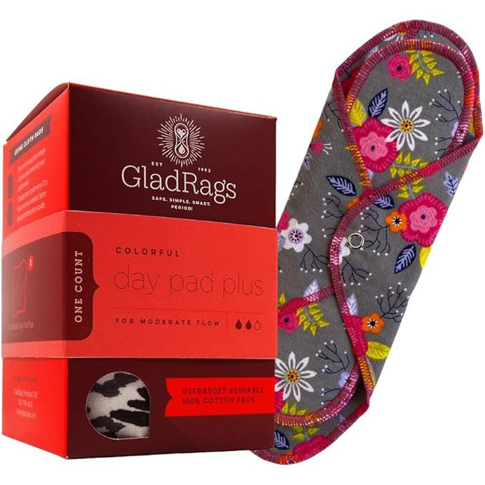 GladRags Day Pads have a unique three-part design, which allows you to customise the absorbency of the pad according to your flow by choosing one or two inserts. Day Pads are equivalent to a standard-size maxi pad and best suited to moderate flow.
