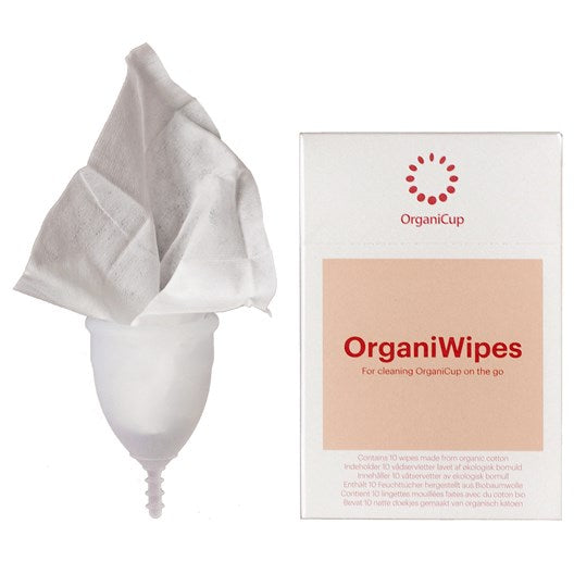 OrganiWipes are individually wrapped menstrual cup wipes that make it convenient to clean your cup on the go, or when you don't have access to fresh water. They also make it easy to clean your menstrual cup in public bathrooms when you can't access the sink.