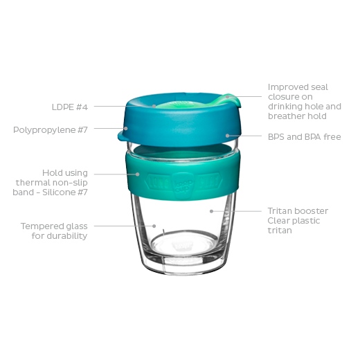 KeepCup Reusable Coffee Cup - Brew LongPlay Glass Double Wall - Medium 12oz Black/Orange (Banksia)
