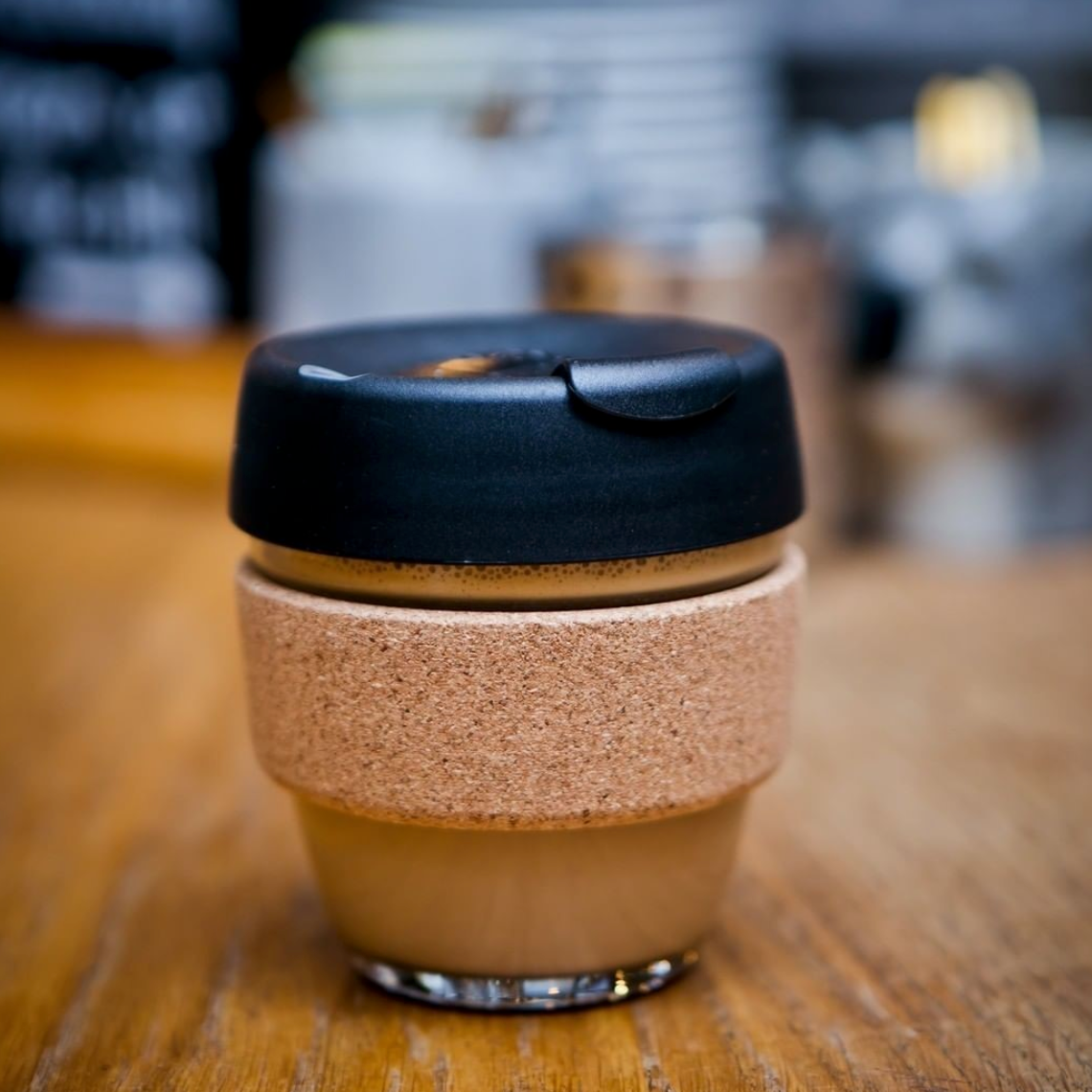 KeepCup Reusable Coffee Cup - Brew Glass & Cork - Extra Small 6oz (Black)