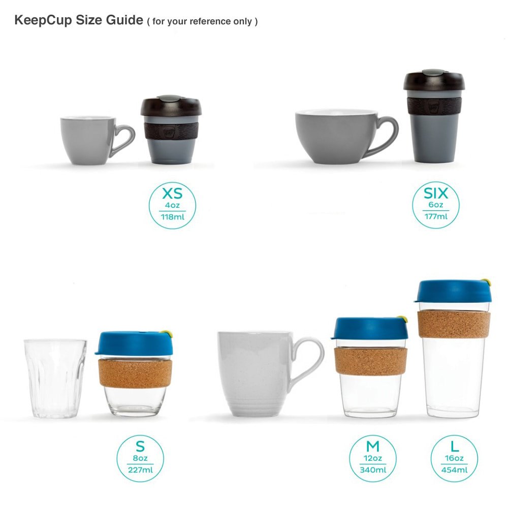 Regular price $25.00KeepCup is the world's first barista standard reusable coffee cup! KeepCup Brew is made from tempered glass and comes with either a silicone or cork band.