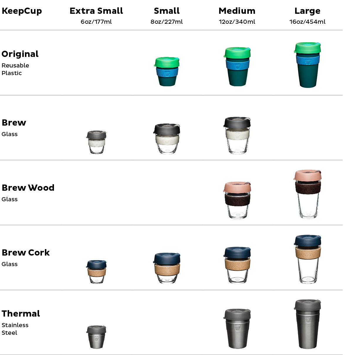 Regular price $28.00KeepCup is the world's first barista standard reusable coffee cup! KeepCup Brew is made from tempered glass and comes with either a silicone or cork band.