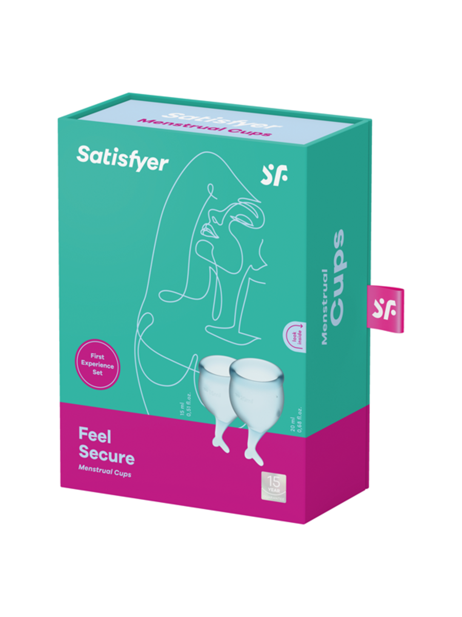 The Satisfyer Feel Secure Menstrual Cup Set offers a practical, reusable way to manage your period. Each set contains two soft silicone cups in different sizes, allowing you to switch them up depending on your flow.